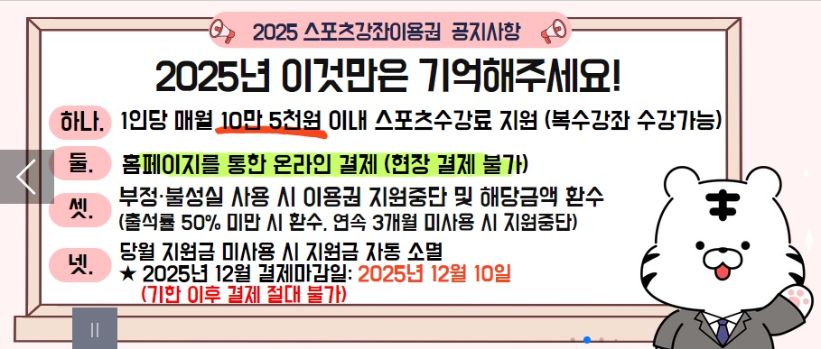 스포츠 강좌 이용권 공식 홈페이지에서 신청할 수 있습니다.