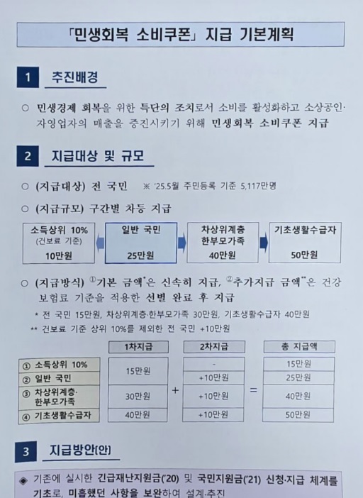‘민생회복 소비쿠폰 지급 기본계획’을 발표했습니다.
